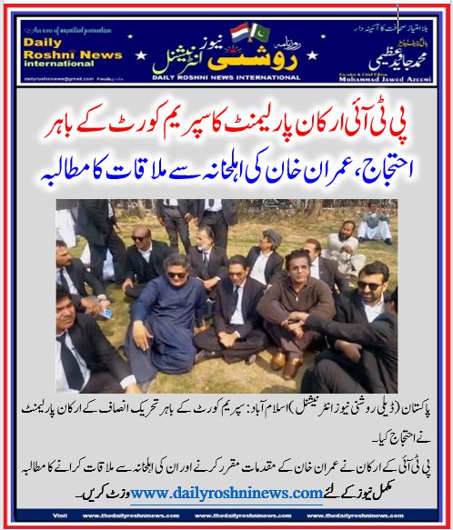 پاکستان (ڈیلی روشنی نیوز انٹرنیشنل )اسلام آباد: سپریم کورٹ کے باہر تحریک انصاف کےارکان پارلیمنٹ نے احتجاج کیا۔