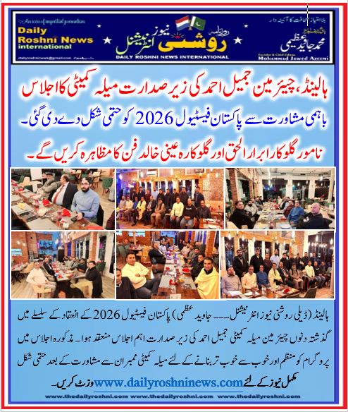 ہالینڈ (ڈیلی روشنی نیوز انٹرنیشنل۔۔۔ جاوید عظمی) پاکستان فیسٹیول 2026 کے انعقاد کے سلسلے میں گذشتہ دنوں چیئر مین میلہ کمیٹی جمیل احمد کی زیر صدارت اہم اجلاس منعقد ہوا ۔ مذکورہ اجلاس میں پروگرام کو منظم اور خوب سے خوب تر بنانے کے لئے میلہ کمیٹی ممبران سے مشاورت کے بعد حتمی شکل دے دی گئی۔ 25 جنوری 2026 کو ہونے والے پاکستان فیسٹیول ونٹر ایڈیشن میں ہالینڈ مختلف شہروں ایمسٹر ڈیم ، دی ہیگ اورروٹرڈیم سے معروف نمایاں شخصیات پر مشتمل ہے میلہ کمیٹی کے ممبران پروگرام کو کامیاب بنانے کے لئے اپنی صلاحیتوں کا مظاہرہ کر رہے ہیں ۔ متذکرہ پروگرام میں نامور گلوکار ابرار الحق اور گلو کارہ عینی خالد اپنی سحر انگیز آوازوں سے شائقین میلہ کو