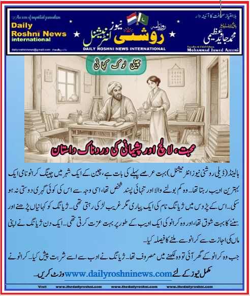 ہالینڈ(ڈیلی روشنی نیوز انٹرنیشنل )بہت عرصے پہلے کی بات ہے، چین کے ایک شہر میں چینگ کرانو نامی ایک بہترین ادیب رہتا تھا۔ وہ کم بولنے والا اور تنہائی پسند شخص تھا، اسی وجہ سے اس کی کوئی گہری دوستی نہ ہو سکی۔اس کے پڑوس میں ژیانگ نام کی ایک پیاری مگر غریب لڑکی رہتی تھی۔ ژیانگ کو کہانیاں پڑھنے اور سننے کا بہت شوق تھا، اور وہ کرانو کی ایک ادیب کے طور پر بہت عزت کرتی تھی۔ ایک دن ژیانگ نے اپنی ماںکی اجازت سے کرانو سے ملنے کا فیصلہ کیا۔