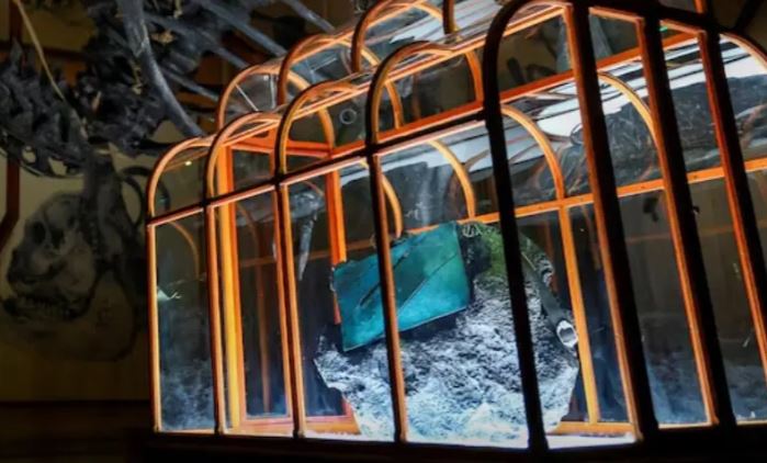 یہ سی گرین رنگ کا بیگ ایمسٹرڈیم کے ’آرٹ زو میوزیم‘ میں ایک خاص انداز میں نمائش کے لیے پیش کیا گیا ہے، جہاں اسے ٹی ریکس کے مجسمے کے نیچے پنجرے میں ایک چٹان پر رکھا گیا ہے۔ یہ نمائش 11 مئی تک جاری رہے گی، جس کے بعد اسے نیلام کیا جائے گا اور اس کی ابتدائی قیمت پانچ لاکھ ڈالر سے زائد رکھی گئی ہے۔