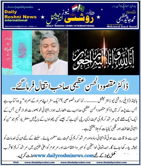 ڈاکٹر مقصود الحسن عظیمی صاحب انتقال فرما گئے۔