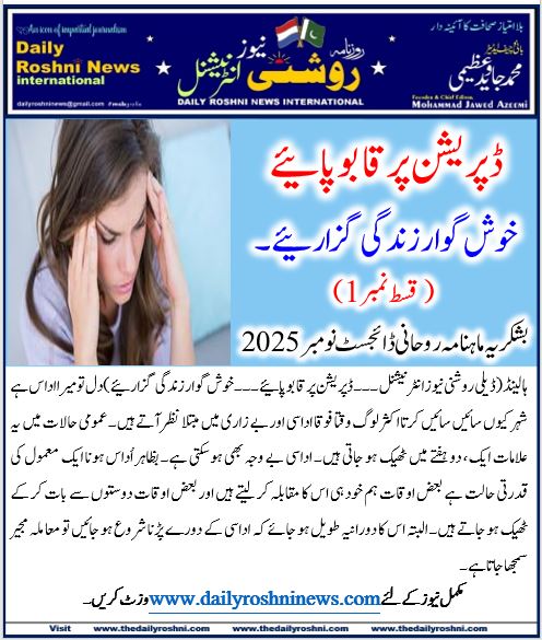 ہالینڈ(ڈیلی روشنی نیوز انٹرنیشنل ۔۔۔ ڈپریشن پر قابو پائیے۔۔۔ خوش گوار زندگی گزارئیے)دل تو میرا اداس ہے شہر کیوں سائیں سائیں کرتا اکثر لوگ وقتا فوقا اداسی اور بے زاری میں مبتلا نظر آتے ہیں۔ عمومی حالات میں یہ علامات ایک، دو ہفتے میں ٹھیک ہو جاتی ہیں۔ اداسی بے وجہ بھی ہو سکتی ہے۔ بظاہر اُداس ہونا ایک معمول کی قدرتی حالت ہے بعض اوقات ہم خود ہی اس کا مقابلہ کر لیتے ہیں اور بعض اوقات دوستوں سے بات کر کے ٹھیک ہو جاتے ہیں۔ البتہ اس کا دورانیہ طویل ہو جائے کہ اداسی کے دورے پڑنا شروع ہو جائیں تو معاملہ مجیر سمجھا جاتا ہے۔