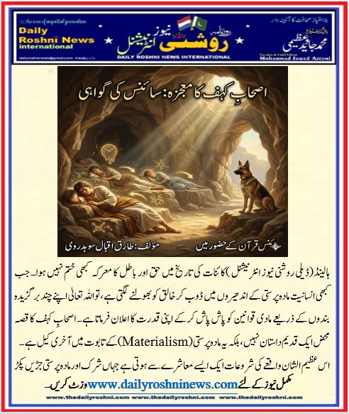 ہالینڈ(ڈیلی روشنی نیوز انٹرنیشنل )کائنات کی تاریخ میں حق اور باطل کا معرکہ کبھی ختم نہیں ہوا۔ جب کبھی انسانیت مادہ پرستی کے اندھیروں میں ڈوب کر خالق کو بھولنے لگتی ہے، تو اللہ تعالیٰ اپنے چند برگزیدہ بندوں کے ذریعے مادی قوانین کو پاش پاش کر کے اپنی قدرت کا اعلان فرماتا ہے۔ اصحابِ کہف کا قصہ محض ایک قدیم داستان نہیں، بلکہ یہ مادہ پرستی (Materialism) کے تابوت میں آخری کیل ہے۔