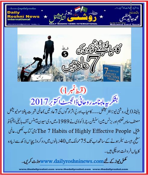 ذیل میں ہم اسٹیفن کوؤی کی شہرۂ آفاق کتاب The 7 Habits of Highly Effective People ‘‘کامیاب اور پُراثرلوگوں کی 7 عادتیں ’’ کے خلاصے کی پانچویں قسط نوجوان قارئین کے لیے پیش کررہے ہیں۔