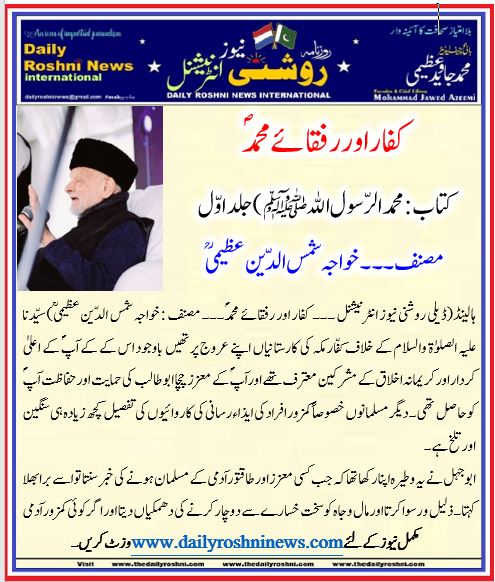 ہالینڈ(ڈیلی روشنی نیوز انٹرنیشنل ۔۔۔ کفار اور رفقائے محمدؐ۔۔۔ مصنف : خواجہ شمس الدّین عظیمیؒ)سیّدنا علیہ الصلوٰۃ والسلام کے خلاف کفّار مکہ کی کارستانیاں اپنے عروج پر تھیں باوجود اس کے کے اۤپؐ کے اعلیٰ کردار اور کریمانہ اخلاق کے مشرکین معترف تھے اور اۤپؐ کے معزز چچا ابو طالب کی حمایت اور حفاظت اۤپؐ کو حاصل تھی۔ دیگر مسلمانوں خصوصاً کمزور افراد کی ایذاء رسانی کی کاروائیوں کی تفصیل کچھ زیادہ ہی سنگین اور تلخ ہے۔