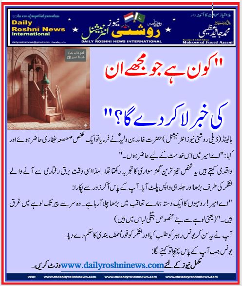 ہالینڈ(ڈیلی روشنی نیوز انٹرنیشنل )حضرت خالد بن ولید ؓ نے فرمایا تو ایک شخص صعصعہ غِفاری حاضر ہوئے اور کہا: