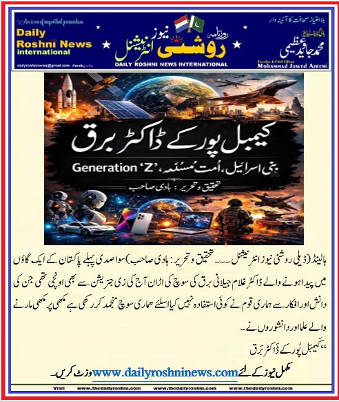 ہالینڈ(ڈیلی روشنی نیوز انٹرنیشنل ۔۔۔ تحقیق و تحریر : ہادی صاحب)سوا صدی پہلے پاکستان کے ایک گاؤں میں پیدا ہونے والے ڈاکٹر غلام جیلانی برق کی سوچ کی اڑان آج کی زی جنریشن سے بھی اونچی تھی جن کی دانش اور افکار سے ہماری قوم نے کوئی استفادہ نہیں کیا اسلئے ھماری سوچ منجمد کر رکھی ہے مکھی پر مکھی مارنے والے علما اور دانشوروں نے۔