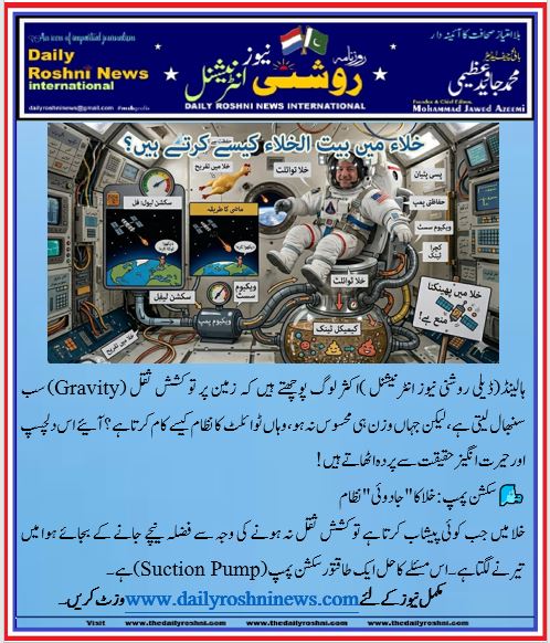 ہالینڈ(ڈیلی روشنی نیوز انٹرنیشنل )اکثر لوگ پوچھتے ہیں کہ زمین پر تو کشش ثقل (Gravity) سب سنبھال لیتی ہے، لیکن جہاں وزن ہی محسوس نہ ہو، وہاں ٹوائلٹ کا نظام کیسے کام کرتا ہے؟ آئیے اس دلچسپ اور حیرت انگیز حقیقت سے پردہ اٹھاتے ہیں!