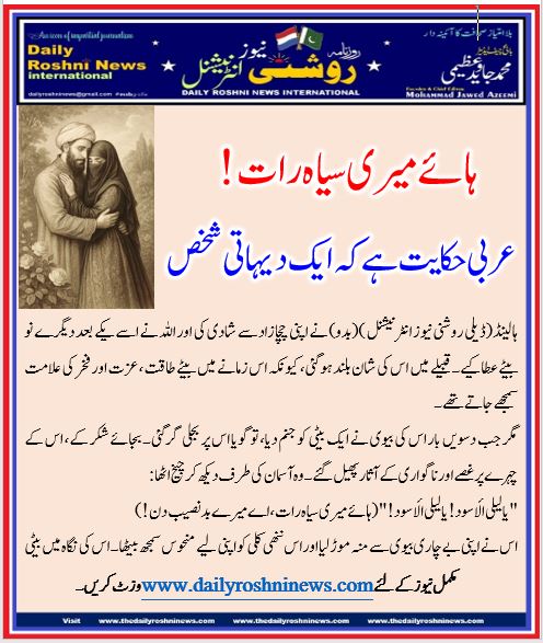 ہالینڈ(ڈیلی روشنی نیوز انٹرنیشنل )(بدو) نے اپنی چچازاد سے شادی کی اور اللہ نے اسے یکے بعد دیگرے نو بیٹے عطا کیے۔ قبیلے میں اس کی شان بلند ہو گئی، کیونکہ اس زمانے میں بیٹے طاقت، عزت اور فخر کی علامت سمجھے جاتے تھے۔