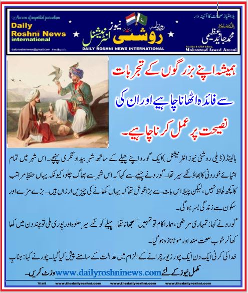 ہمیشہ اپنے بزرگوں کے تجربات سے فائدہ اٹھانا چاہیے اور ان کی نصیحت پر عمل کرنا چاہیے۔
