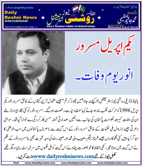 یکم اپریل مسرور انور یوم وفات :-