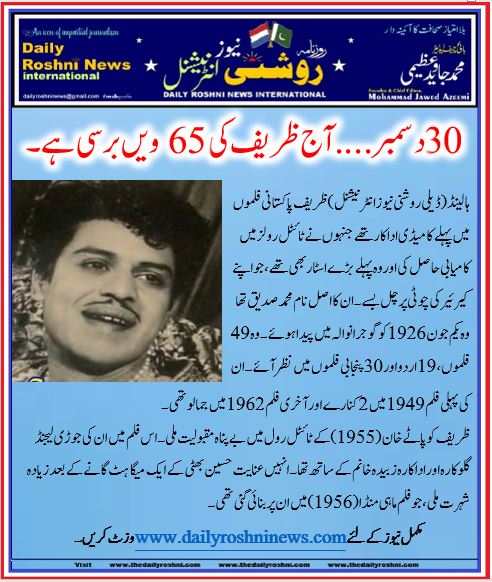 ۔30 دسمبر…. آج ظریف کی 65ویں برسی ہے۔