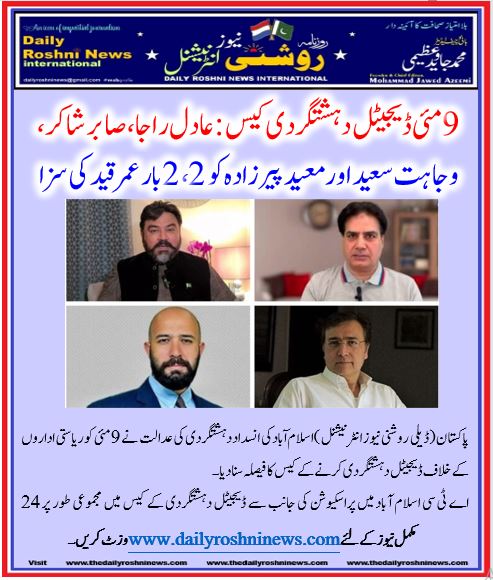 پاکستان(ڈیلی  روشنی نیوز انٹرنیشنل )اسلام آبادکی انسداد دہشتگردی کی عدالت نے 9 مئی کو ریاستی اداروں کے خلاف ڈیجیٹل دہشتگردی کرنے کےکیس کا فیصلہ سنا دیا۔