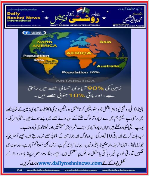ہالینڈ(ڈیلی روشنی نیوز انٹرنیشنل )دوستو، یقین کرنا مشکل ہو، لیکن دنیا کی 90 فیصد آبادی زمین کے شمالی حصے میں رہتی ہے، یعنی ہم میں سے زیادہ تر لوگ نقشے کے اوپر والے حصے میں بسے ہوئے ہیں۔ شمالی امریکہ، یورپ، ایشیا یہی وہ خطے ہیں جہاں زیادہ آبادی، بڑے شہر، بڑی معیشتیں اور ٹیکنالوجی کی دوڑ ہے۔