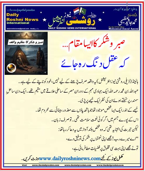 ہالینڈ(ڈیلی روشنی نیوز انٹرنیشنل )یہ واقعہ صرف پڑھنے کے لیے نہیں، خود کو ناپنے کے لیے ہے…