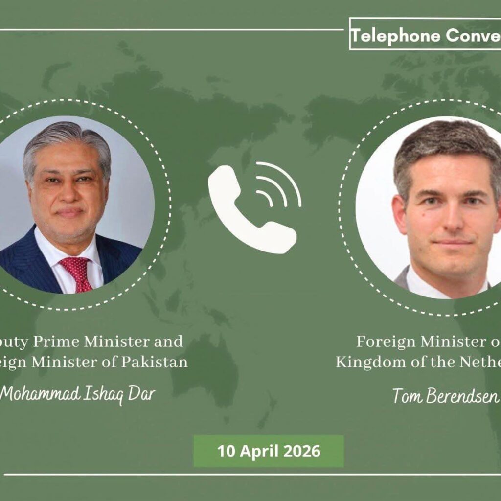 Deputy Prime Minister/Foreign Minister Senator Mohammad Ishaq Dar received a call today from the Foreign Minister of the Kingdom of the Netherlands, H.E. Mr. Tom Berendsen.