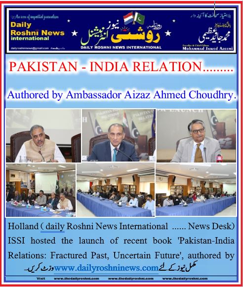 Holland ( daily Roshni News International …… News Desk )ISSI hosted the launch of recent book ‘Pakistan-India Relations: Fractured Past, Uncertain Future’, authored by Ambassador Aizaz Ahmad Chaudhry. Former Foreign Minister Jalil Abbas Jillani was Chief Guest on the occasion. Other Speakers included former Vice Chief of Naval Staff Vice Admiral Khan Hasham and former President of Rawalpindi Chambers of Commerce and Industry Raja Amer Iqbal. During the session, deep insights were shared on the enduring challenges and complexities of Pakistan-India relations and on realistic prospects for the future. The event was attended by senior diplomats, practitioners, academics, think-tank experts, students, and members of civil society and the media. #PakistanIndiaRelations #ISSI